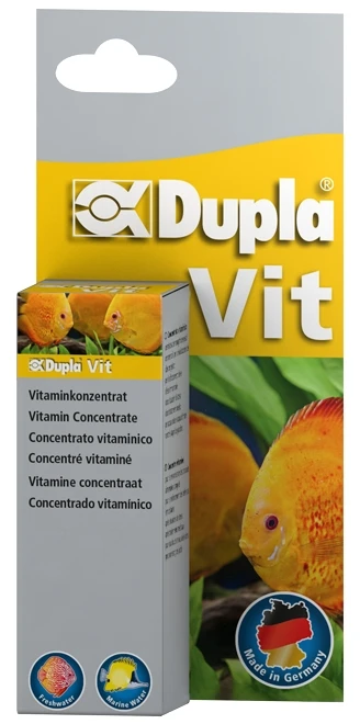 Especially in early spring an late fall: Drip 5 droplets of Dupla Vit daily onto the garden pond fish food, allow to soak in, and immediately use to feed the fish.